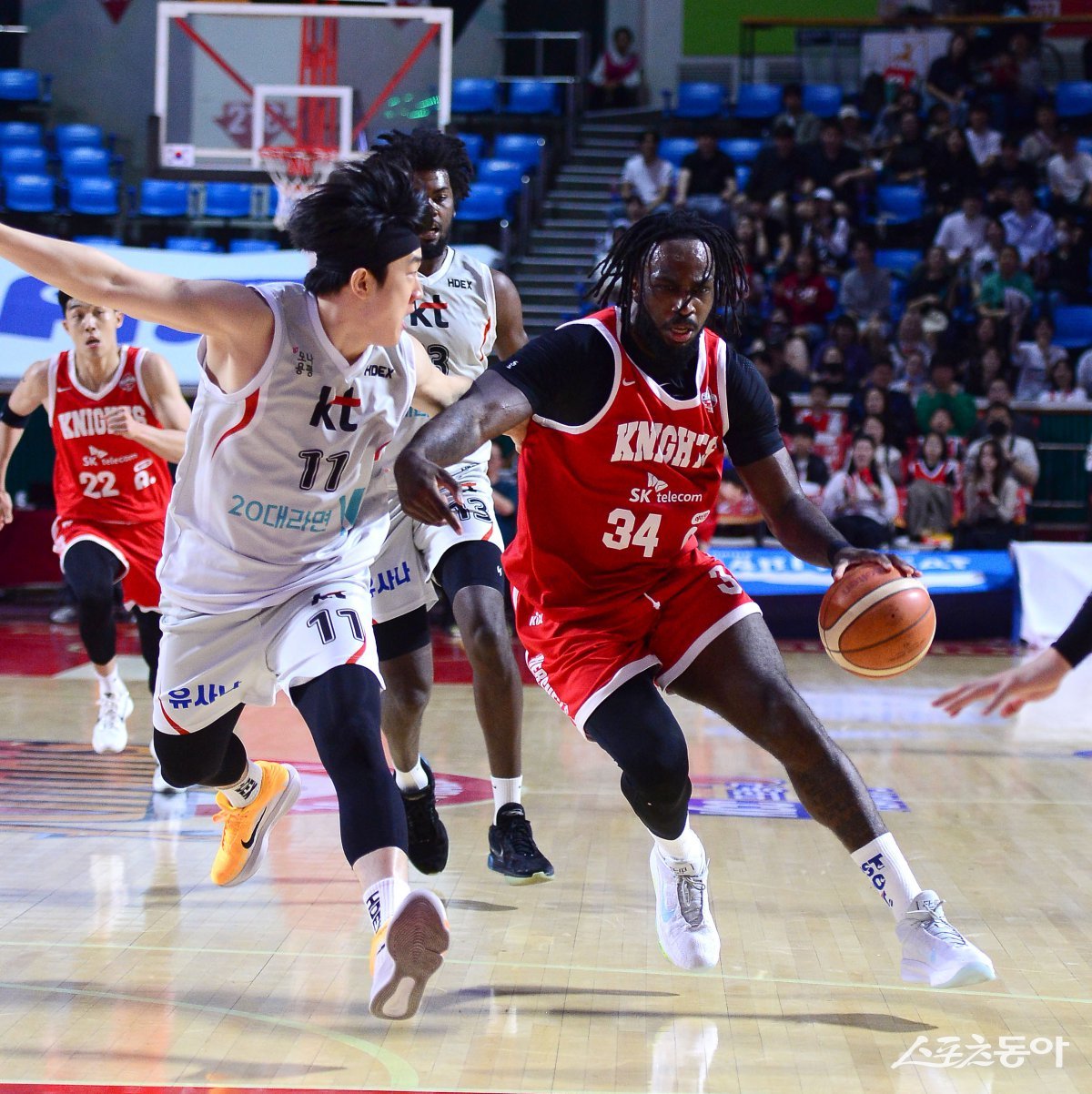 23일 서울 잠실학생체육관에서 열린 ‘2024-2025 프로농구’ 4강 플레이오프 1차전 SK와 KT 경기에서 SK 워니가 KT의 수비를 뚫고 골밑을 공격하고 있다. 잠실|김종원 기자 won@donga.com