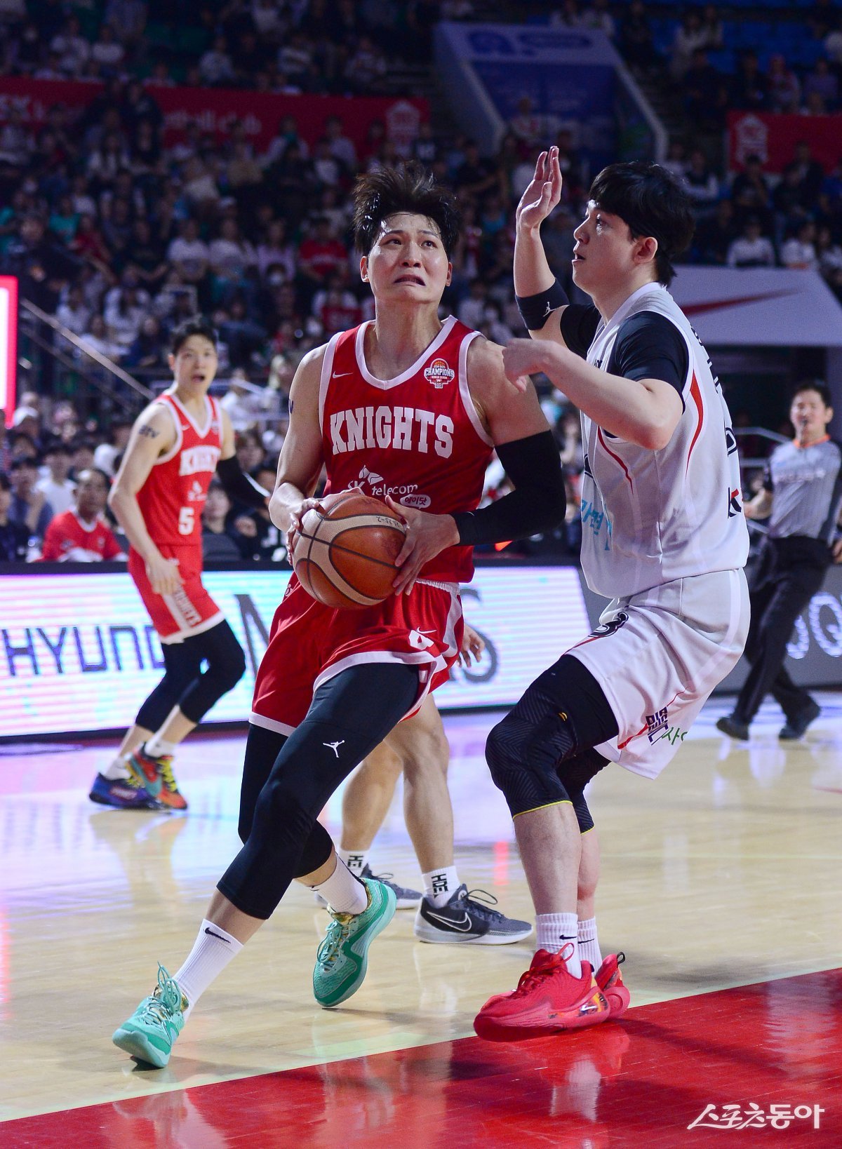 23일 서울 잠실학생체육관에서 열린 ‘2024-2025 프로농구’ 4강 플레이오프 1차전 SK와 KT 경기에서 SK 안영준이 KT의 수비를 뚫고 골밑을 공격하고 있다. 잠실|김종원 기자 won@donga.com