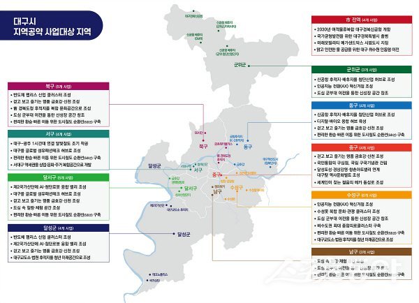대구광역시가 제21대 대통령 선거를 앞두고 발표한 지역공약 사업대상 지역 및 사업 요약도. 사진제공 ㅣ 대구시