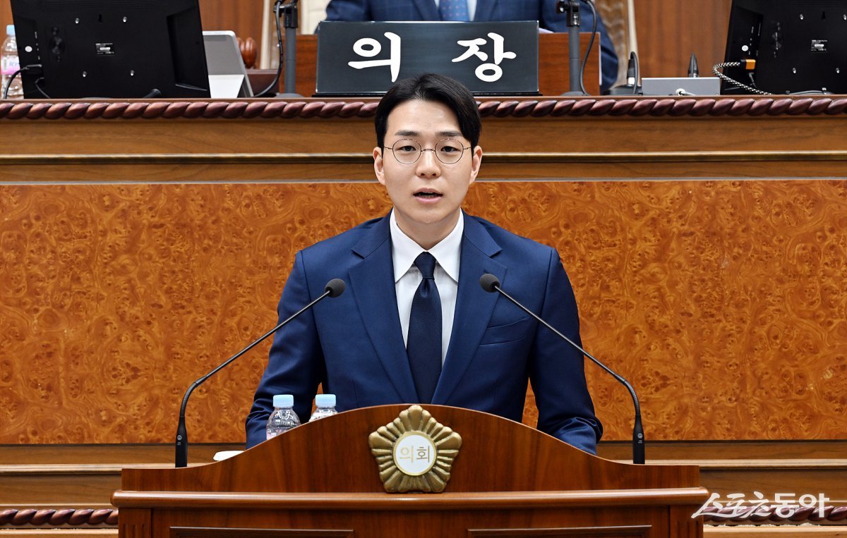 정진호 의원이 25일 본희의장에서 5분 자유발언을 하고 있다. 사진제공ㅣ의정부시의회