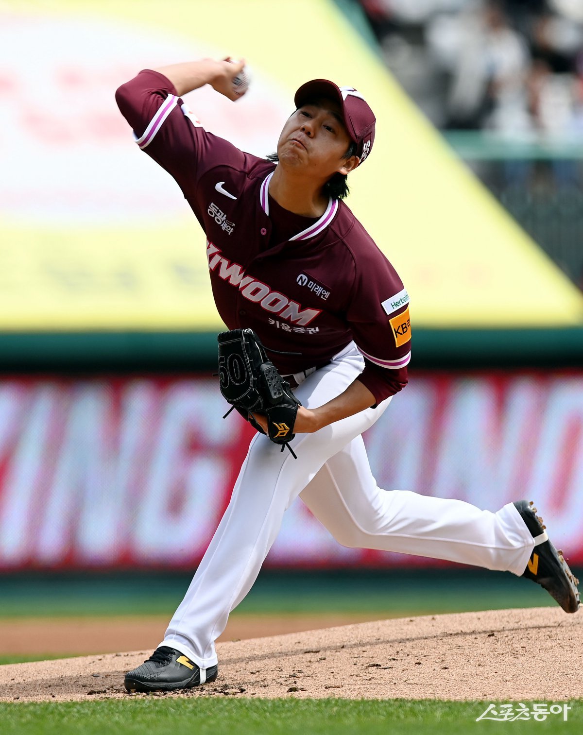 27일 인천 SSG 랜더스필드에서 ‘2025 신한 SOL 뱅크 KBO리그’ SSG 랜더스와 키움 히어로즈의 경기가 열렸다. 키움 선발투수 하영민이 힘차게 볼을 던지고 있다. 인천 | 김민성 기자 marineboy@donga.com