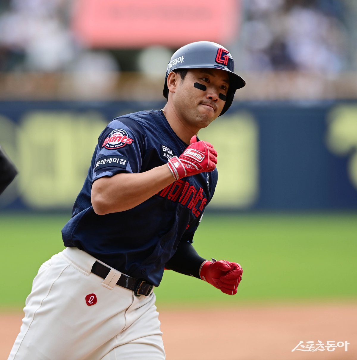 27일 서울 잠실야구장에서 열린 ‘2025 신한 SOL Bank KBO리그’ 롯데 자이언츠와 두산 베어스의 경기에서 5회초 1사 롯데 전준우가 좌월 솔로 홈런을 친 후 세리머니를 하고 있다. 잠실 | 주현희 기자 teth1147@donga.com