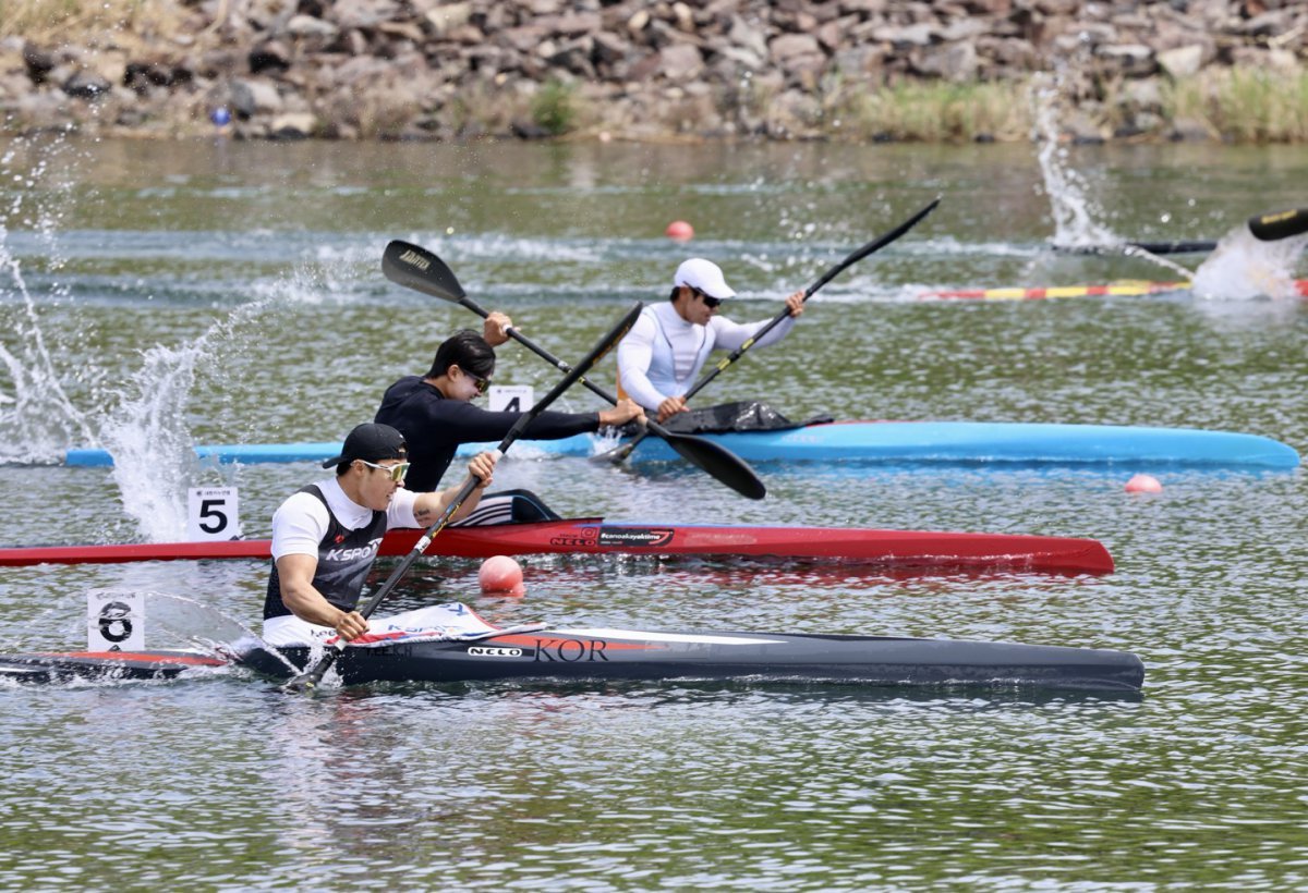서울올림픽기념국민체육진흥공단배 제16회 전국 카누 경기대회에 참가한 선수들이 힘차게 노를 젓고 있다 사진제공|국민체육진흥공단
