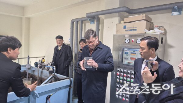 지난달 7일 리카르다스 슐레파비치우스 주한 리투아니아 대사가 경주시 맑은물사업본부 생활하수과를 방문해 하수처리 공정을 견학하고 있다. 사진제공 ㅣ 경주시