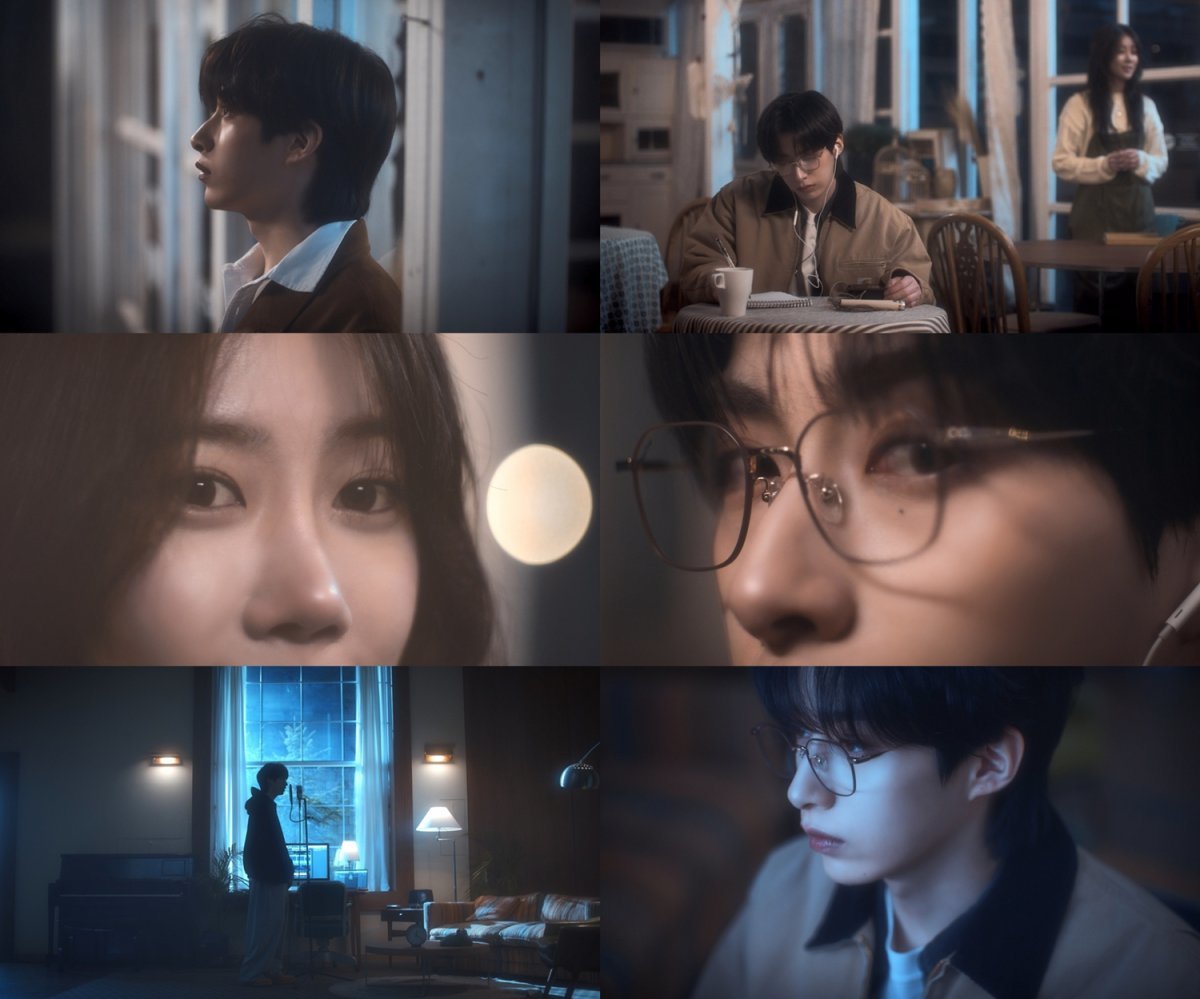 영상 속 시온은 한적한 카페에서 가사를 써 내려가며 음악적 영감을 얻고 있는 모습이다. 이어 설렘 가득한 재즈풍 멜로디 위로 시온과 한 여인은 서로의 시선을 의식해 묘한 긴장감을 선사한다. 특히, 시온은 마치 한 편의 영화 속 주인공 같은 눈빛으로 분위기를 압도하며 뮤직비디오 본편에 대한 기대감을 증폭시켰다.