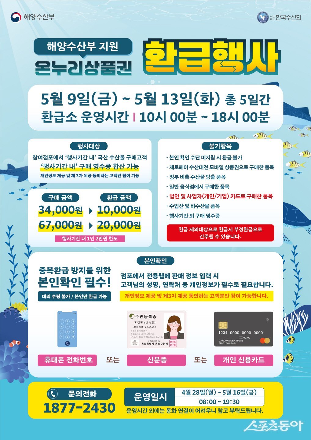 환급 한도는 행사 기간 내 1인 최대 2만 원이다. 환급 금액은 ▲3만 4천 원 이상 ~ 6만 7천 원 미만 구매 시 1만 원 ▲6만 7천 원 이상 구매 시 2만 원이다.