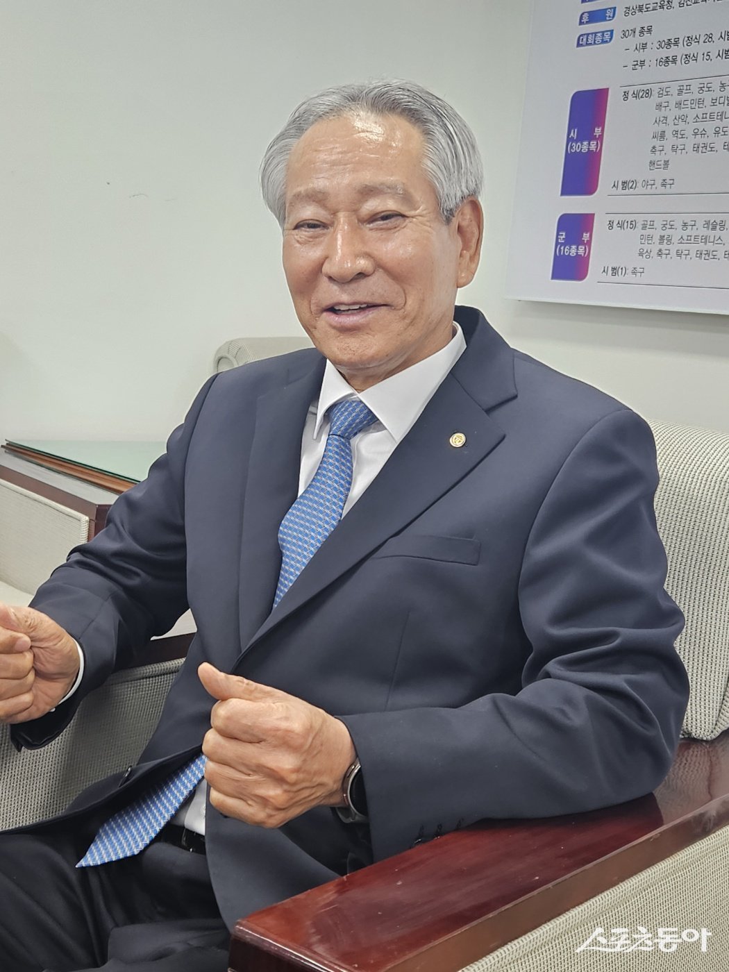 경북체육 수장, 김점두 경북체육회장이 바로 그 주인공이다. 그는 이번 도민체전에 산불로 출전이 어려웠던 의성, 안동, 영덕 등 산불피해지역을 찾아 대회 출전을 성사시킨 장본인이다.