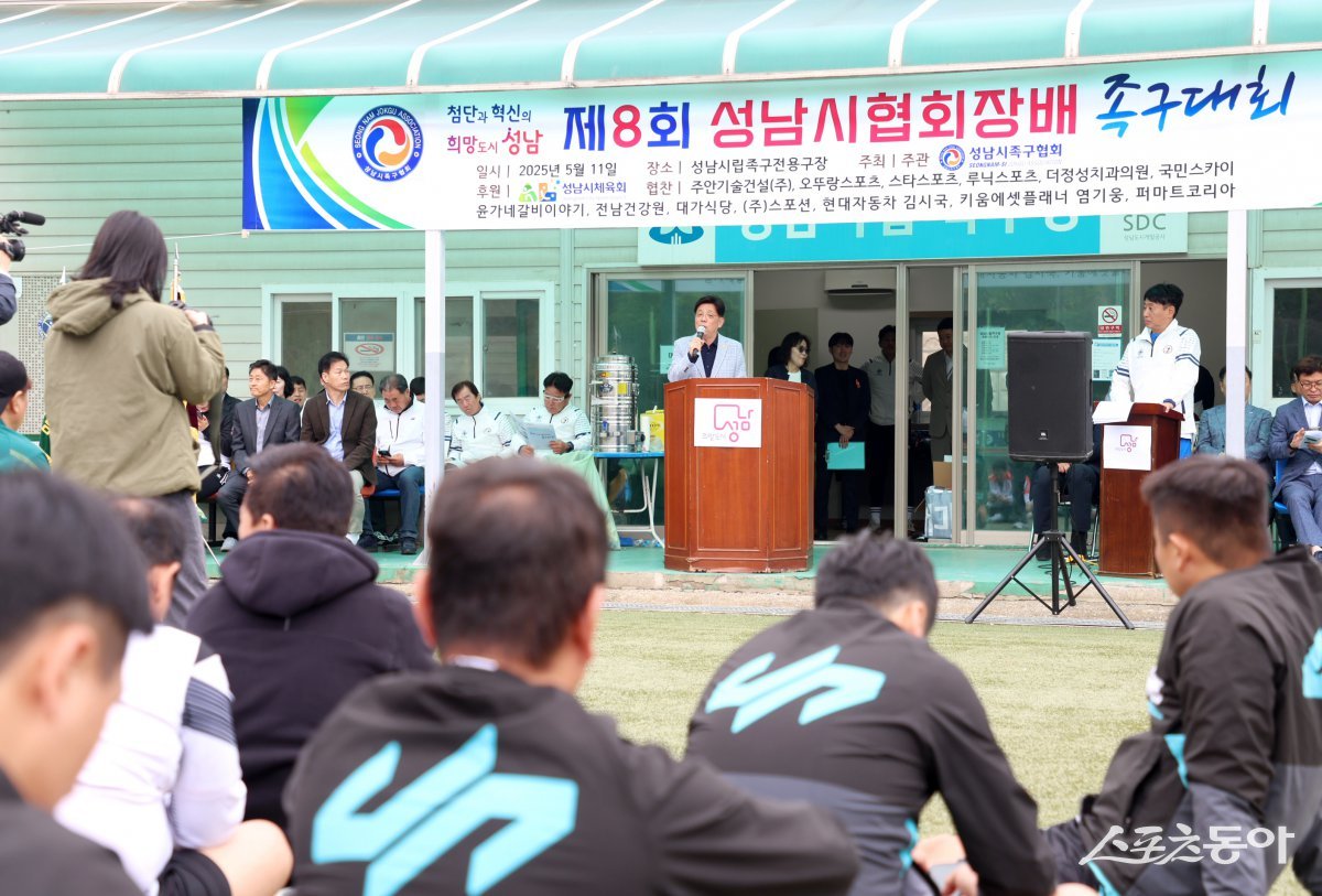 안광림 부의장이 11일 성남시립족구장에서 인사말을 하고 있다. 사진제공ㅣ성남시의회