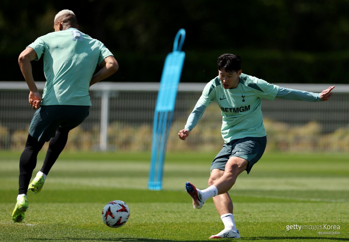부상에서 돌아온 손흥민이 13일(한국시각) 유럽축구연맹(UEFA) 유로파리그 결승전을 앞두고 팀 훈련을 실시하고 있다.