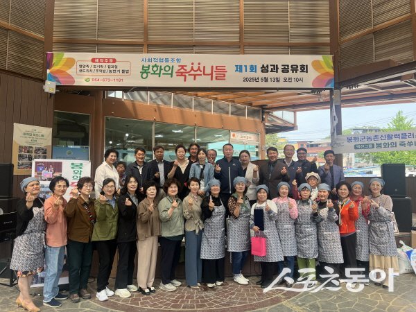 봉화군 사회적협동조합 ‘봉화의 죽쑤니들’이 지난 13일 봉화신시장 내 농특산물 전시판매장 무대에서 지난 5년간의 활동을 되돌아보는 ‘성과공유회’를 성황리에 개최했다. 이번 행사에는 회원을 비롯해 지역주민, 자원봉사자 등 100여 명이 참석해 따뜻한 봉사의 발자취를 함께 나누고, 향후 발전 방향을 모색하는 뜻깊은 시간을 가졌다.‘봉화의 죽쑤니들’은 2021년 5월, 법전면 한약우 권역센터에서 발대식을 열고 본격적인 활동을 시작했다. 지역 각 동리의 새마을부녀회장들과 자발적인 자원봉사자들이 힘을 모아 설립한 이 단체는, 처음에는 소규모의 마을 중심 돌봄 활동에서 출발했지만 점차 활동 반경을 넓히며 지역사회에 깊은 울림을 전하고 있다.