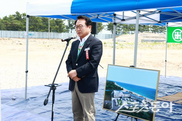 손병복 울진군수가 울진 해양치유센터 조성사업 안전기원제에서 인사말을 하고 있다. 사진제공 ㅣ 울진군