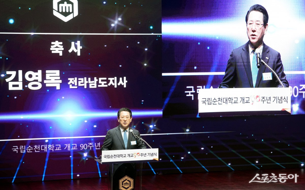 김영록 전라남도지사가 순천대 개교 90주년 기념행사에 참석해 지역대학 혁신과 미래인재 양성 지원에 최선을 다하겠다고 다짐했다.