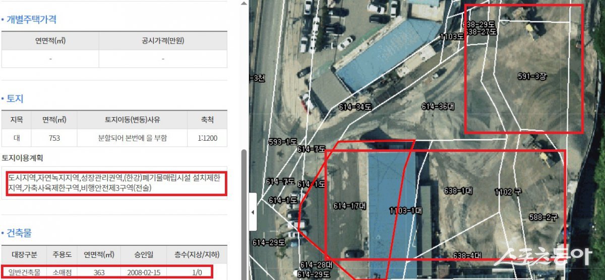 용인시기흥구 보정동 614-17번지 일대 건축물 대장(소매점). 사진제공|경기도 지도