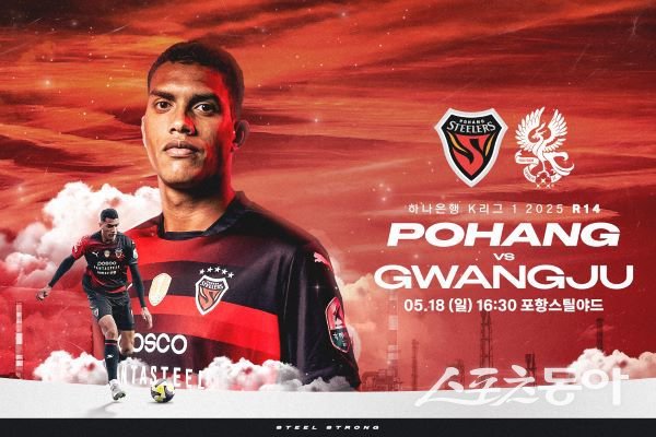 포항스틸러스는 오는 18일 오후 4시 30분 포항스틸야드에서 광주FC와 하나은행 K리그1 2025 14라운드를 펼친다.