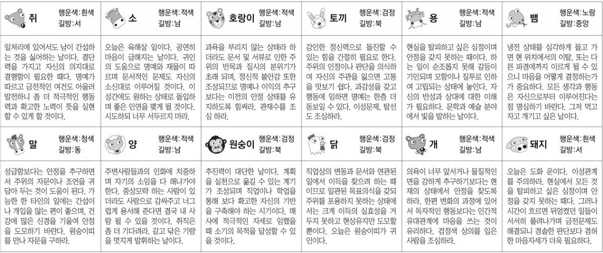 ■ 스포츠동아 오늘의 운세 띠별|운수 좋은 날 (음력: 4월 22일)