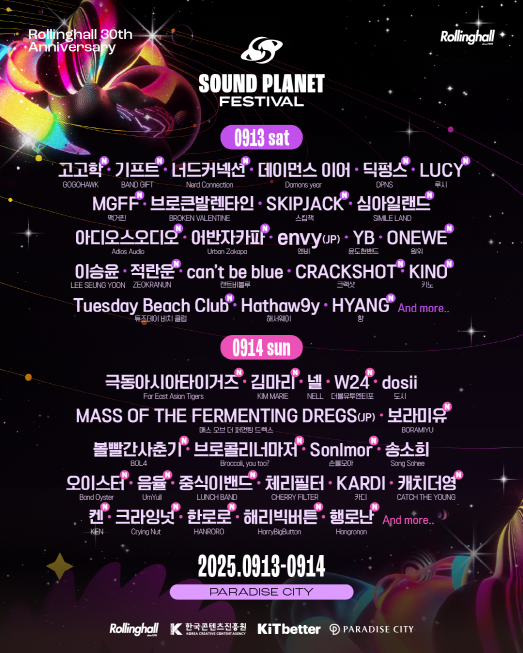 롤링홀이 개관 30주년을 기념해 개최하는 ‘사운드플래닛페스티벌 2025 (SOUND PLANET FESTIVAL 2025)’이 총 32팀의 2차 라인업을 전격 공개했다