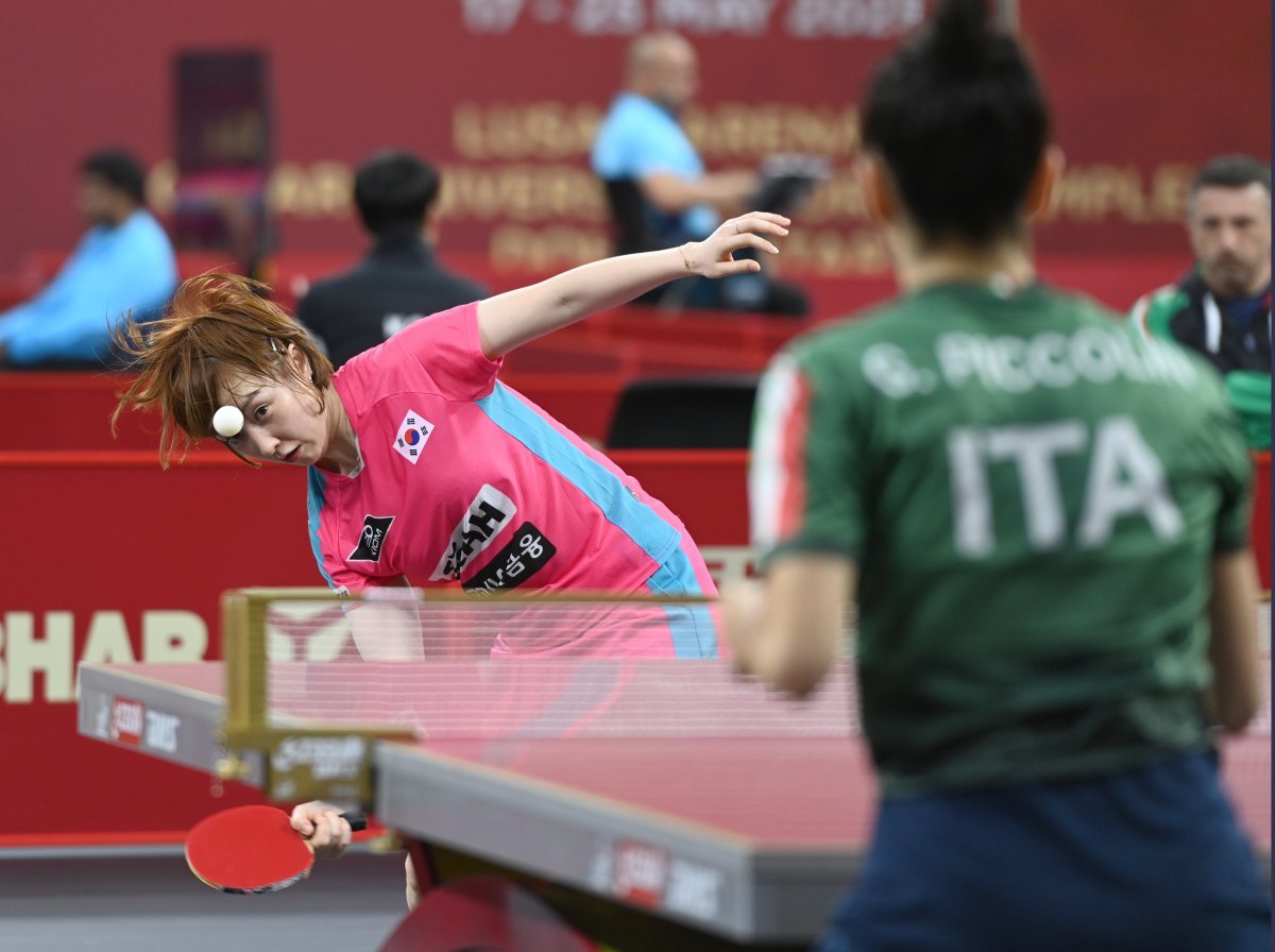 탁구국가대표팀 서효원(38·한국마사회·세계랭킹 27위)의 탁구는 끝나지 않았다. 그는 카타르 도하에서 진행 중인 2025세계선수권대회를 마친 뒤 태극마크를 반납하기로 했다. 그러나 생애 마지막 국제대회에서 신들린 활약으로 작별을 미루고 있다.