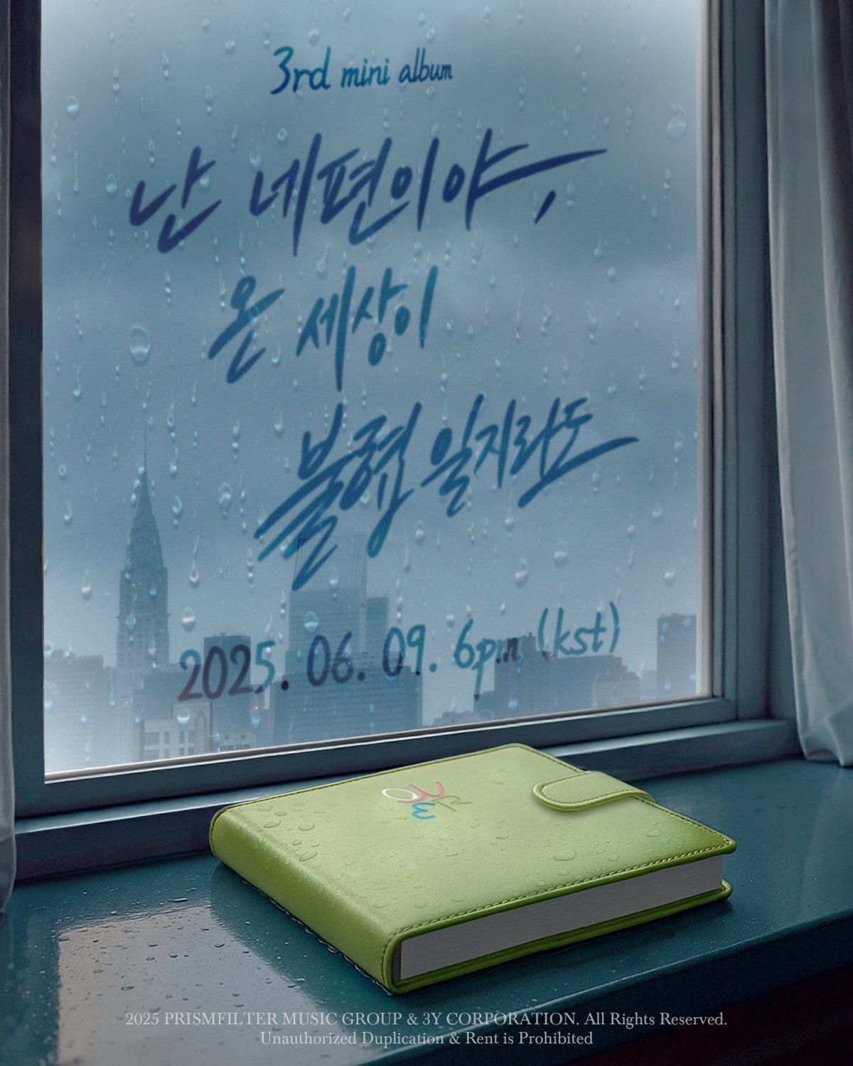 미니 3집 발매 소식과 함께 QWER은 공식 SNS를 통해 ’난 네 편이야, 온 세상이 불협일지라도‘의 컴백 포스터를 게재했다. 공개된 포스터에는 멤버 시연의 상징색과 동일한 다이어리가 비에 젖은 모습으로 등장, QWER이 이번 앨범을 통해 어떤 이야기를 들려줄지 궁금증을 높였다.