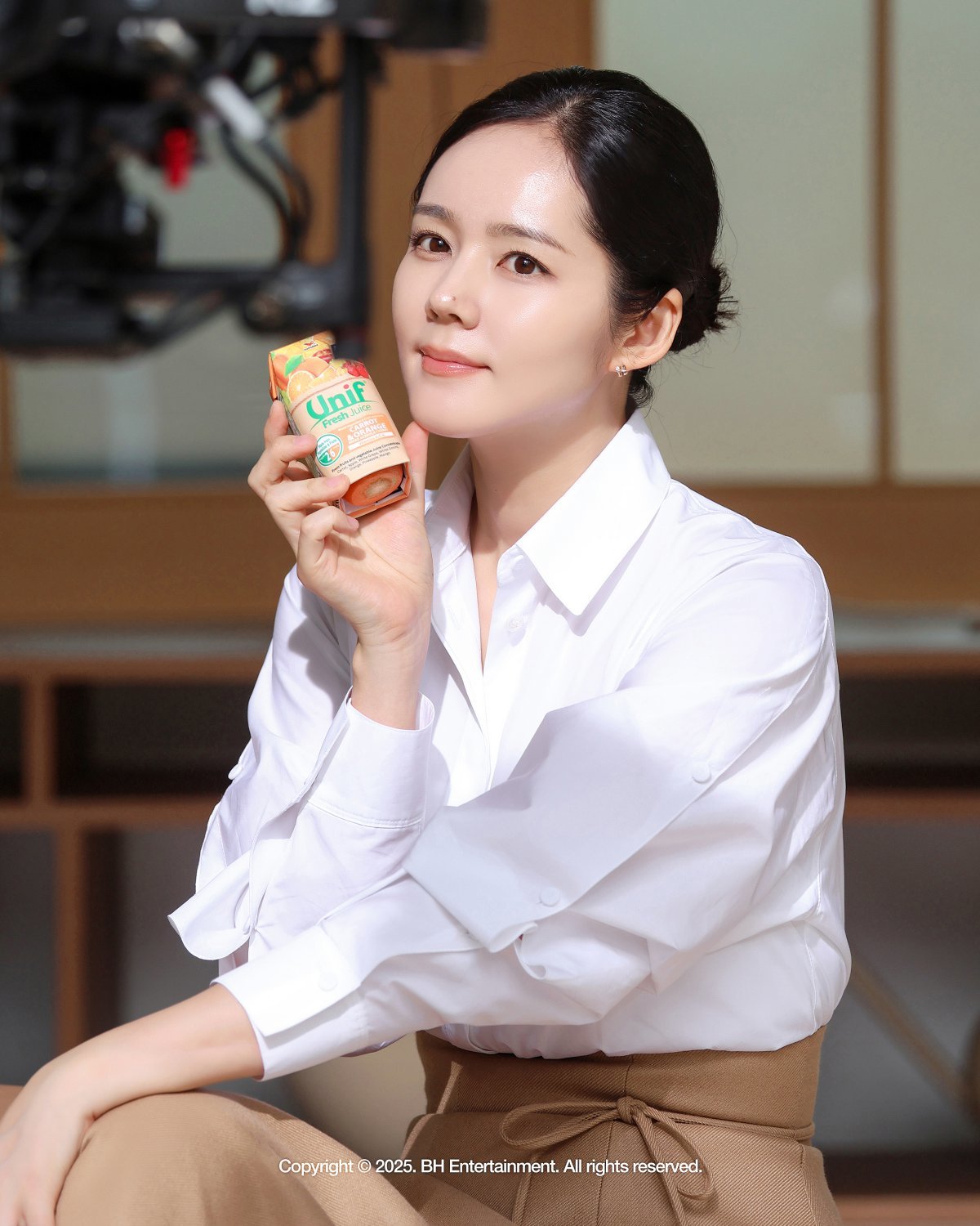 한가인은 태국의 대표 주스 브랜드 ‘유니프(UNIF)’의 광고 모델로 발탁돼 최근 진행된 광고 촬영 현장에서 포착된 비하인드 컷이 공개되며, 변함없는 아름다움과 고급스러운 분위기로 화제를 모으고 있다.