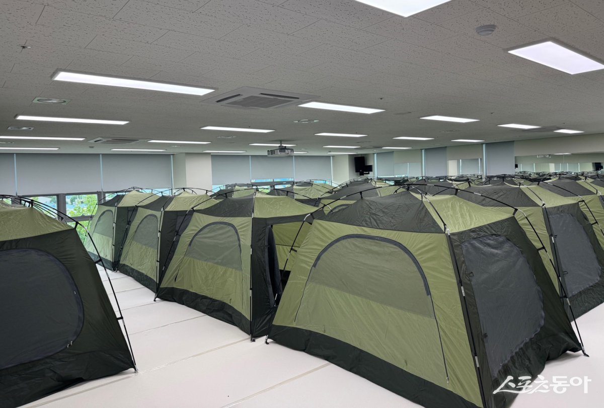하남다누리체육센터 내 2차 임시대피소. 사진제공=광주 광산구