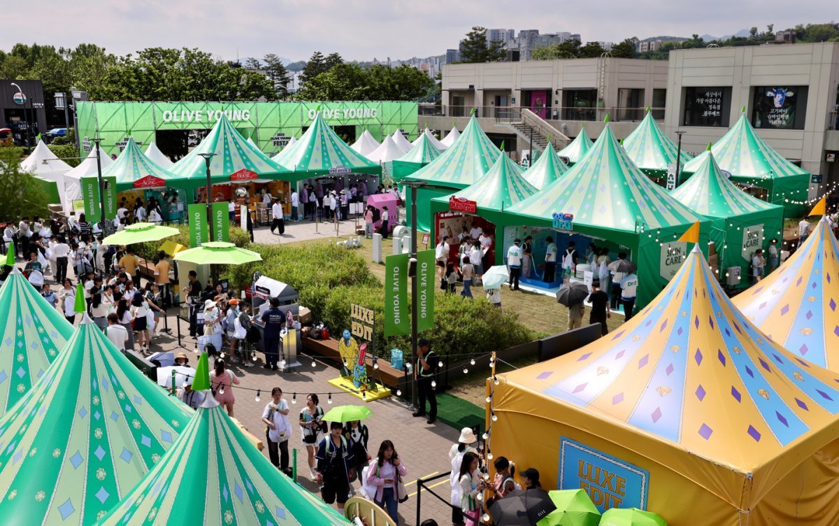 CJ올리브영의 ‘2025 올리브영 페스타’가 역대 최대 규모의 부스와 콘텐츠로 꾸민 뷰티 페스티벌이자, K-뷰티의 현재와 미래를 공유하는 ‘K-뷰티 산업 컨벤션’의 역할을 톡톡히 하며 성황리에 막을 내렸다. ‘2025 올리브영 페스타’ 전경. 사진제공|CJ올리브영