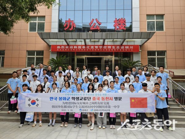 봉화군은 지역 고등학생들로 구성된 ‘국제학생우호교류단’이 5월 25일부터 30일까지 6일간 자매도시인 중국 섬서성 동천시를 방문해 제10회 국제학생우호교류 프로그램을 실시한다고 밝혔다.봉화군과 동천시는 지난 1997년 국제자매결연을 체결한 이래 교육, 문화, 행정 등 다양한 분야에서 활발한 교류를 이어오고 있으며, 특히 양 도시 고등학생 간 교류는 올해로 10회째를 맞이하며 대표적인 청소년 국제교류 행사로 자리매김하고 있다.
