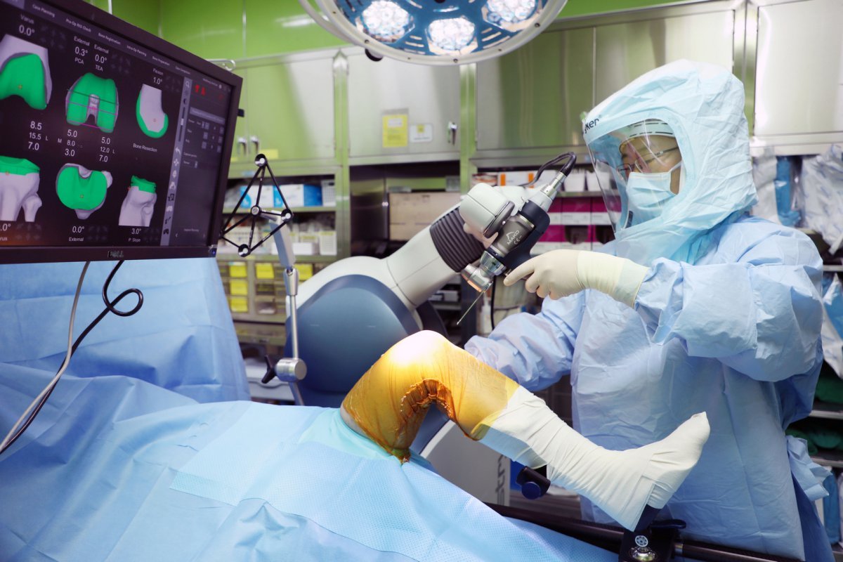 남창현 힘찬병원 관절클리닉 의무원장(정형외과 전문의)이 로봇 인공관절 수술을 집도하고 있다 사진제공|힘찬병원