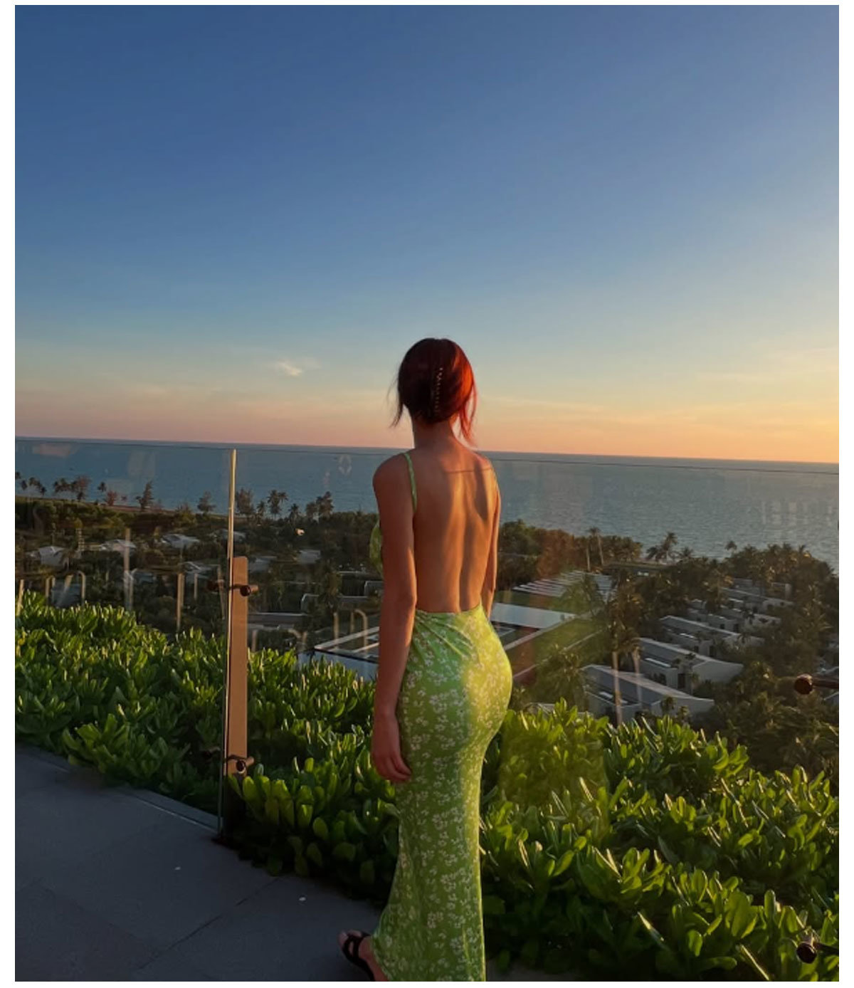 정아는 27일 자신의 SNS에 플라워 프린팅이 더해진 라임색 계열의 백리스 롱 드레스를 입고 건강미 넘치는 몸매를 자랑했다. 정아의 매끈한 허리 라인이 그대로 드러난 드레스는 그의 관능적인 몸매를 더욱 돋보이게 했다.