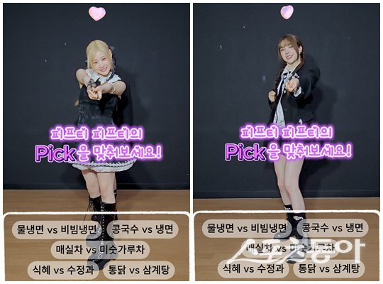 어느덧 초여름. 피프티피프티에게 주어진 ‘플레이 K-푸드 월드컵’ 문항들은 무더위를 책임질 ‘우리 음식’ 고르기였다. ‘물냉파와 비냉파’로도 요약되는 여름 K-푸드 최강자 냉면에 관한 질문은 그룹의 막내 아테나에게 돌아갔다. 아테나는 주저 없이 “비빔냉면”을 선택하곤 “매운 거 말고 좀 순한 맛으로”란 추가 주문도 잊지 않았다.