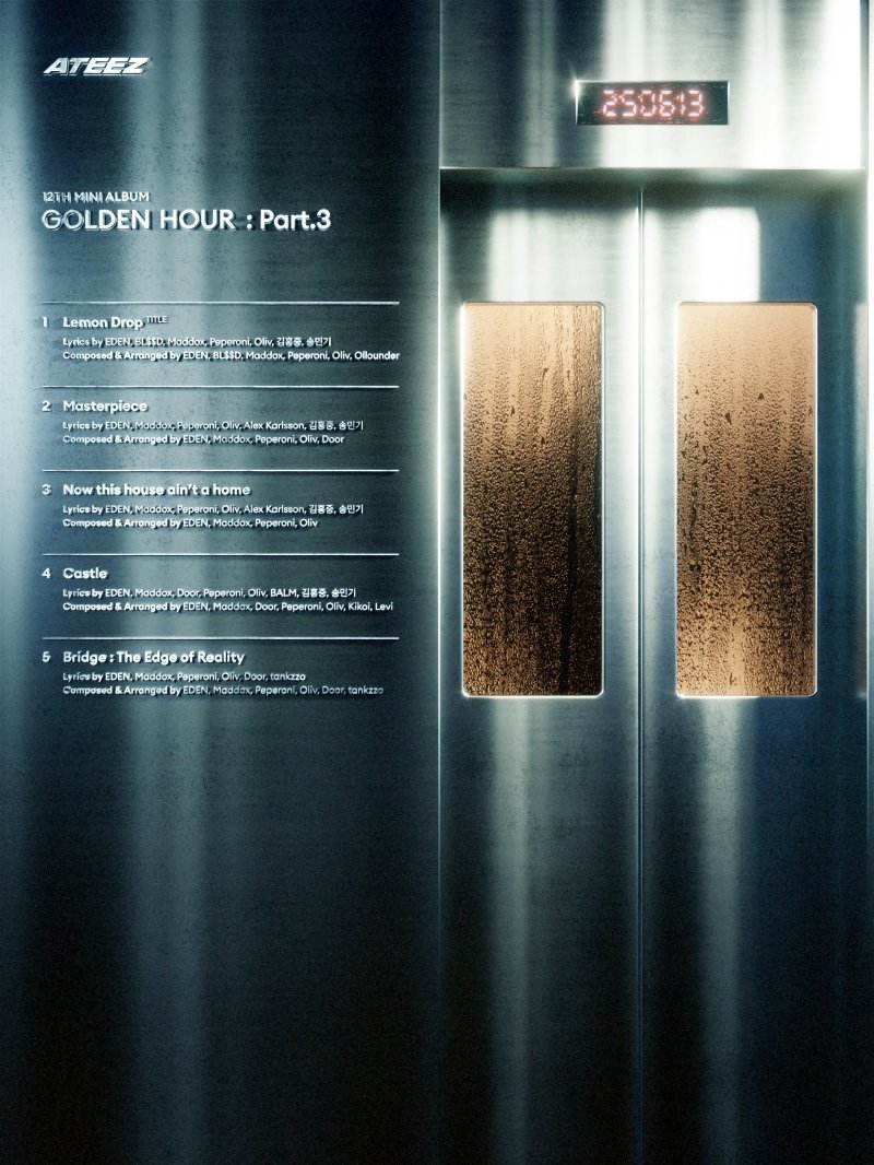 이에 따르면 에이티즈의 새 앨범 타이틀곡은 ‘레몬 드롭(Lemon Drop)’이다. 이 외에도 ‘마스터피스(Masterpiece)’, ‘나우 디스 하우스 에인트 어 홈(Now this house ain’t a home)‘, ’캐슬(Castle)‘, ’브리지 : 디 엣지 오브 리얼리티(Bridge : The Edge of Reality)‘까지, 에이티즈의 더 깊어진 음악성과 폭넓은 스펙트럼을 확인할 수 있는 다채로운 총 5곡이 수록됐다. 특히 멤버 홍중과 민기가 타이틀곡 ’레몬 드롭‘을 포함한 총 4곡의 작사에 이름을 올렸다.