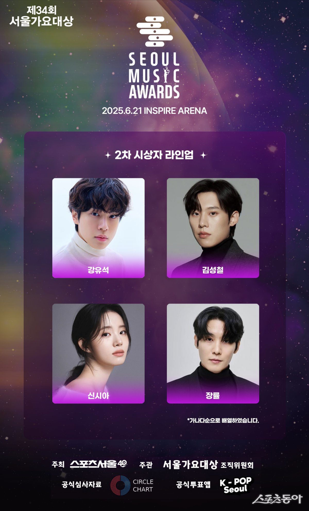 ‘제34회 서울가요대상’(스포츠서울 주최‧서울가요대상 조직위원회 주관, 이하 ‘서울가요대상’)은 30일 강유석, 김성철, 신시아, 장률 등 2차 시상자 라인업을 공개했다.