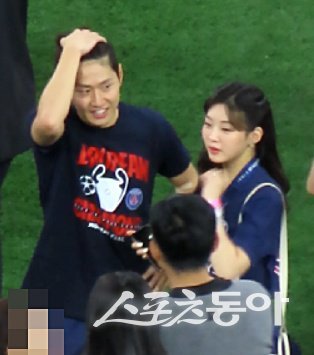 뭔가 도란도란 귀엣말을 나눈 이강인은 박씨에게 우승 메달을 직접 걸어주고 가벼운 포옹을 해준 뒤 ‘빅이어’를 함께 들고 기념사진을 남기기도 했다. 아주 특별한 장소에서 몹시 특별한 상황이긴 하나 다정한 여느 연인과 조금도 다를 바 없었다.
