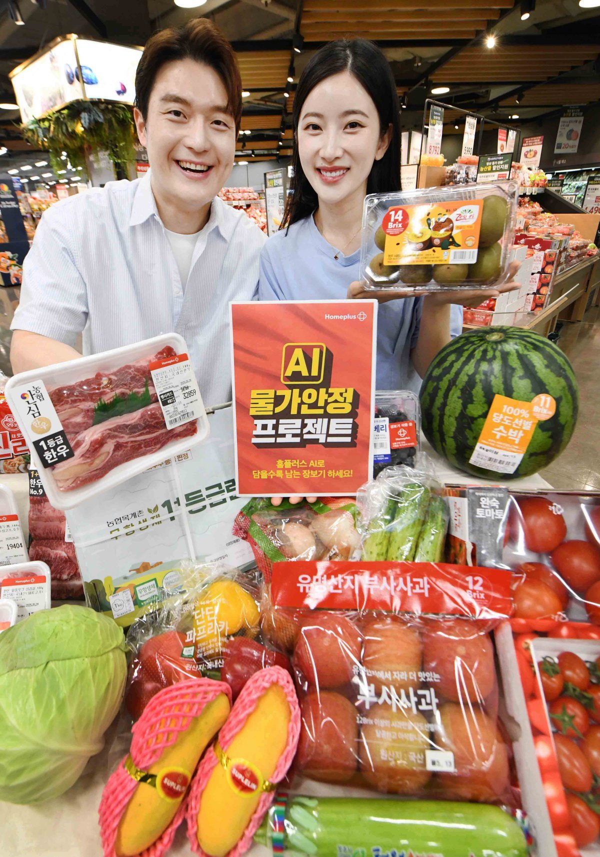 홈플러스가 4일까지 ‘AI 물가안정 프로젝트’를 전개한다. 고객이 가장 필요로 하는 상품을 엄선해 최대 50% 할인 등 파격가에 마련했다. 특히 축산·농산물 등 밥상 물가에 영향을 끼치는 주요 신선식품을 대표 상품으로 선보인다. 사진제공|홈플러스