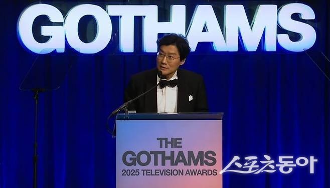 황동혁 감독에게 이번 고담 어워즈는 각별한 의미가 있다. 그는 “2021년 이곳 고담 어워즈에서 오징어 게임으로 ‘획기적인 시리즈-장편부문’ 상을 처음 받았다”며 “그때 ‘이 모든 게 기적’이라고 말했는데, 4년이 지난 지금도 여전히 그 기적은 이어지고 있다고 믿는다”고 말했다.