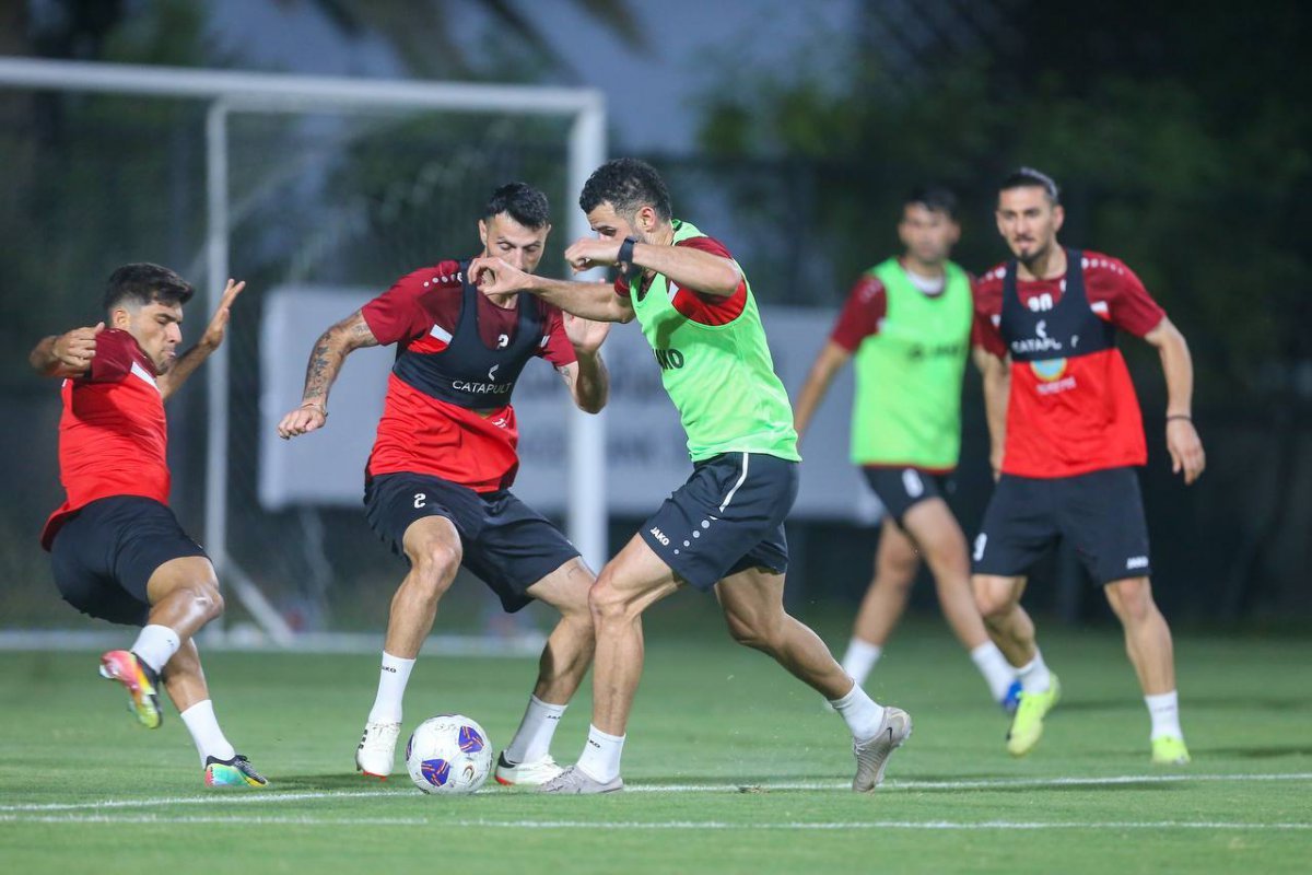 이라크는 6일(한국시간) 바스라 인터내셔널 스타디움에서 열릴 한국과 북중미월드컵 최종예선 조별리그 B조 9차전 홈경기를 앞두고 사령탑 교체라는 승부수를 띄웠다. 그러나 주축 선수가 5명이나 이탈해 걱정도 크다. 지난달 30일 바스라에서 소집훈련을 하고 있는 이라크 선수단. 사진출처│이라크축구대표팀 SNS