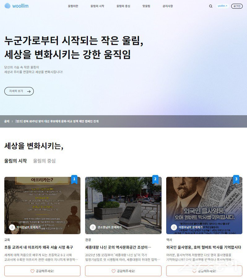국가정책 제안 플랫폼 ‘울림’은 국민이 정책의 수동적 수혜자가 아니라, 주체적 제안자로서 국가 정책 형성에 참여할 수 있도록 마련된 역사·문화 종합 정책 플랫폼이다. 이 플랫폼을 통해 누구나 한국의 역사, 문화, 외교 정책에 대해 자유롭게 의견을 제안할 수 있으며, 이는 정부와 국민 간의 실질적인 소통 창구로 기능하고 있다.