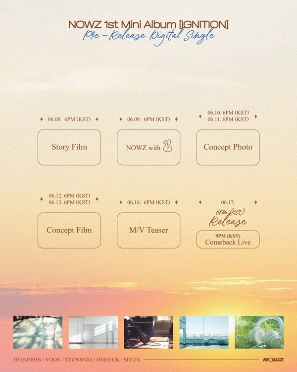 타임 테이블에 따르면 나우즈는 오는 9일 ‘NOWZ with ?’로 시작해 스토리 필름, 콘셉트 포토와 콘셉트 필름, 뮤직비디오 티저에 이어 17일 선공개 싱글 발매와 컴백 기념 라이브를 진행한다. 특히 새출발에 나서는 나우즈의 ‘NOWZ with ?’ 문구에는 토끼 심볼이 포함돼 궁금증을 더했다.