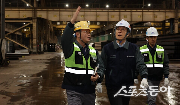 지난해 12월 철강 위기 극복을 위해 동국제강 현장을 방문한 이강덕 포항시장의 모습. 사진제공ㅣ포항시