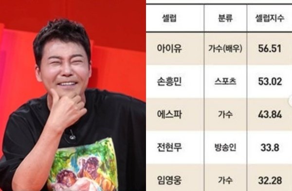 전현무는 1위 아이유, 2위 손흥민, 3위 에스파에 이어 4위에 올랐고, 특히 임영웅과 페이커까지 제쳐 눈길을 끈다.