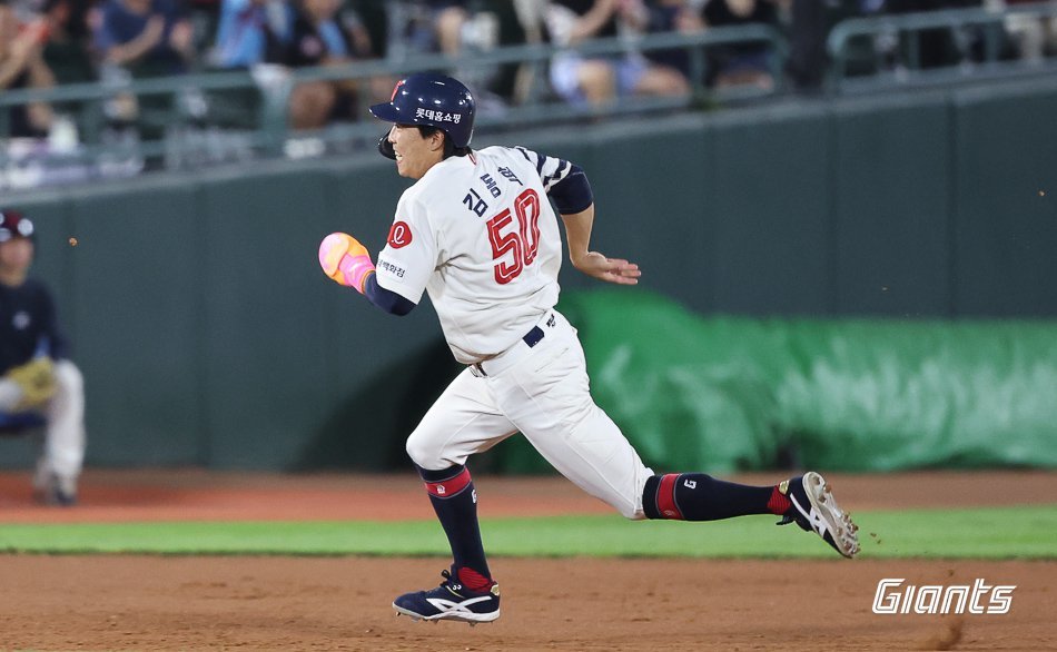 롯데 자이언츠 김동혁은 황성빈, 윤동희 등 부상자들이 많은 상황에서 팀에 큰 힘을 불어넣고 있다. 8일 잠실 두산전에선 공격과 수비 양면에서 맹활약하며 팀의 위닝시리즈를 이끌었다. 사진제공ㅣ롯데 자이언츠