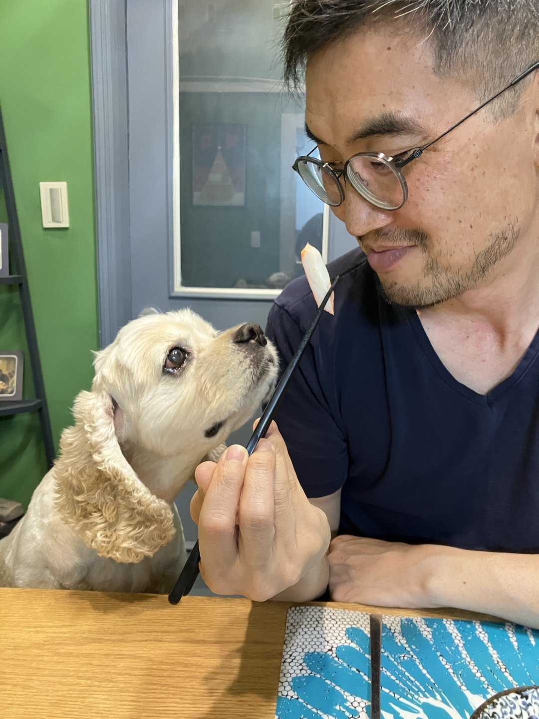 경기도 분당 자택에서 반려견 쿵이와 망중한을 보내고 있는 신성우 작가