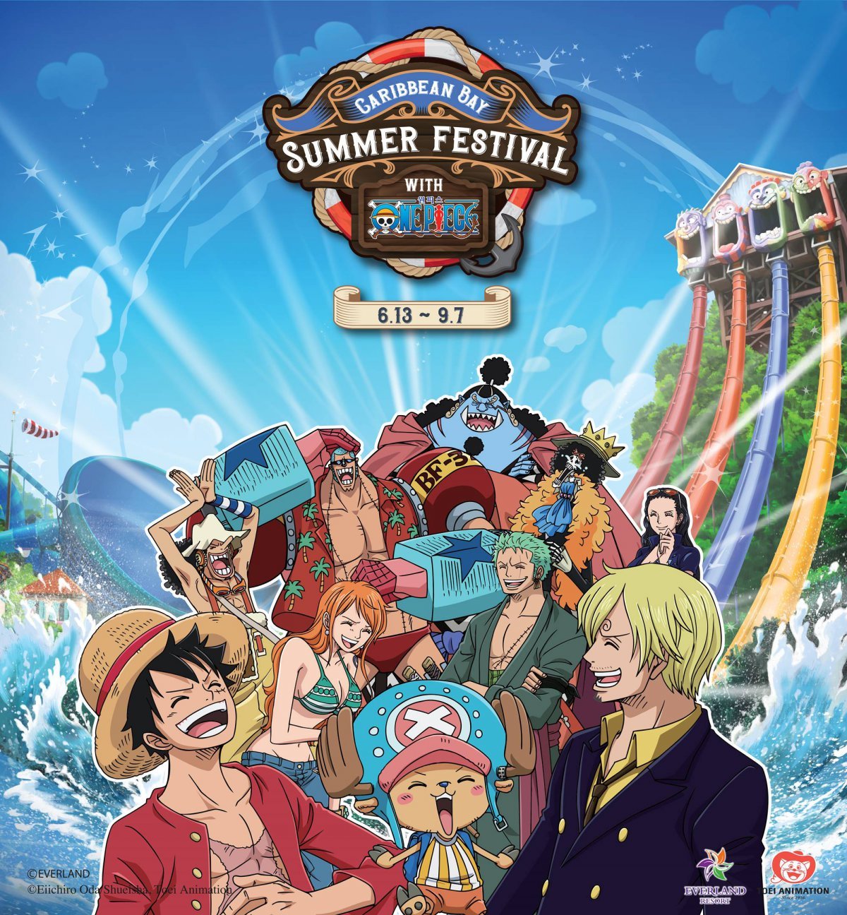 에버랜드도 ‘원피스’와 협업한 여름축제 ‘워터 페스티벌’을 20일 개막한다. 7월 4일부터는 워터파크와 에버랜드를 하루에 모두 이용할 수 있는 스페셜 이벤트를 실시한다. 캐리비안 베이 방문 고객들은 오후에 에버랜드를 무료로 이용할 수 있다.
