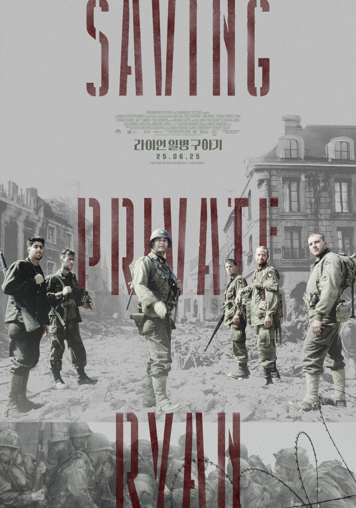 10일 배급사 와이드릴리즈에 따르면 전쟁 발발 이후 75년이 지난 2025년에도 여전히 대한민국의 뼈아픈 역사로 남아있는 6.25 전쟁의 희생자를 기리는 마음에서 ‘라이언 일병 구하기’를 다시 극장에 건다. 호국보훈의 달을 맞이해 6월 25일, 대한민국 최초로 재개봉해 관객과 만난다.