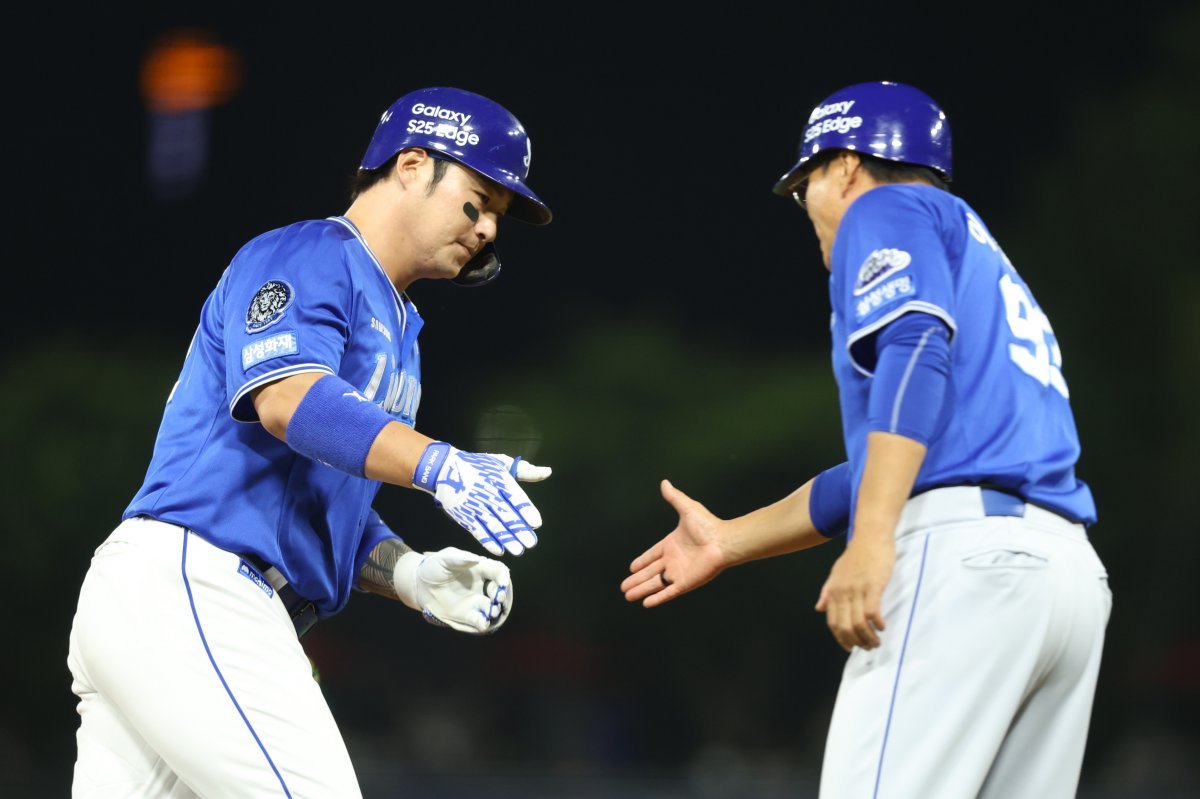 삼성 박병호(52번)는 10일 광주 KIA전에서 홈런포를 터트려 KBO리그 역대 11번째 13시즌 연속 두자릿수 홈런을 기록했다. 사진제공|삼성 라이온즈