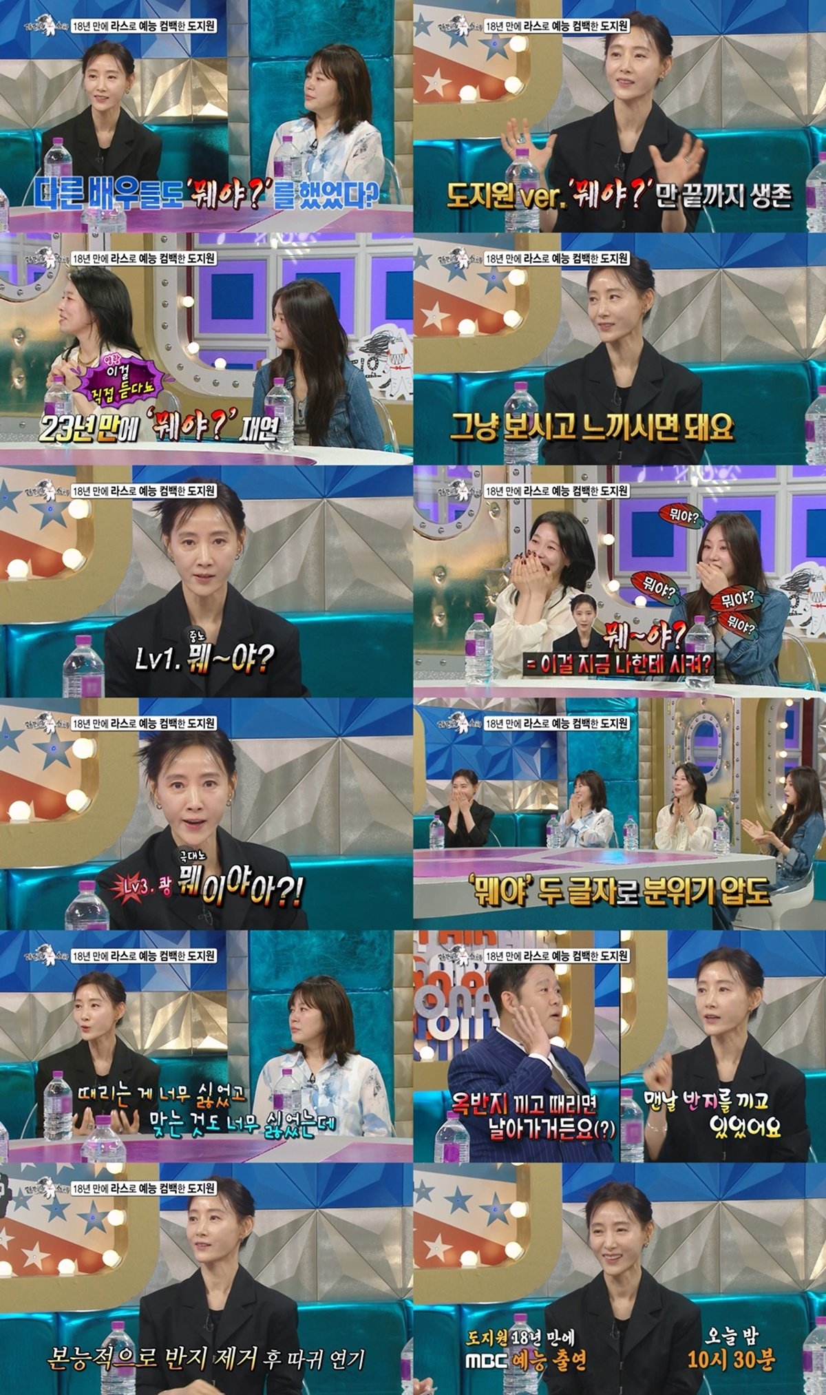 ‘라디오스타’로 18년 만에 MBC 예능에 컴백한 도지원이 레전드 사극 ‘여인천하’의 비하인드를 밝힌다. 그는 전 국민 유행어로 화제였던 “뭬야?”의 탄생 비밀을 공개하고, ‘여인천하’ 이후 23년 만에 선보이는 극대노 버전의 ‘뭬야?’를 재연해 강렬한 카리스마를 발산한다.