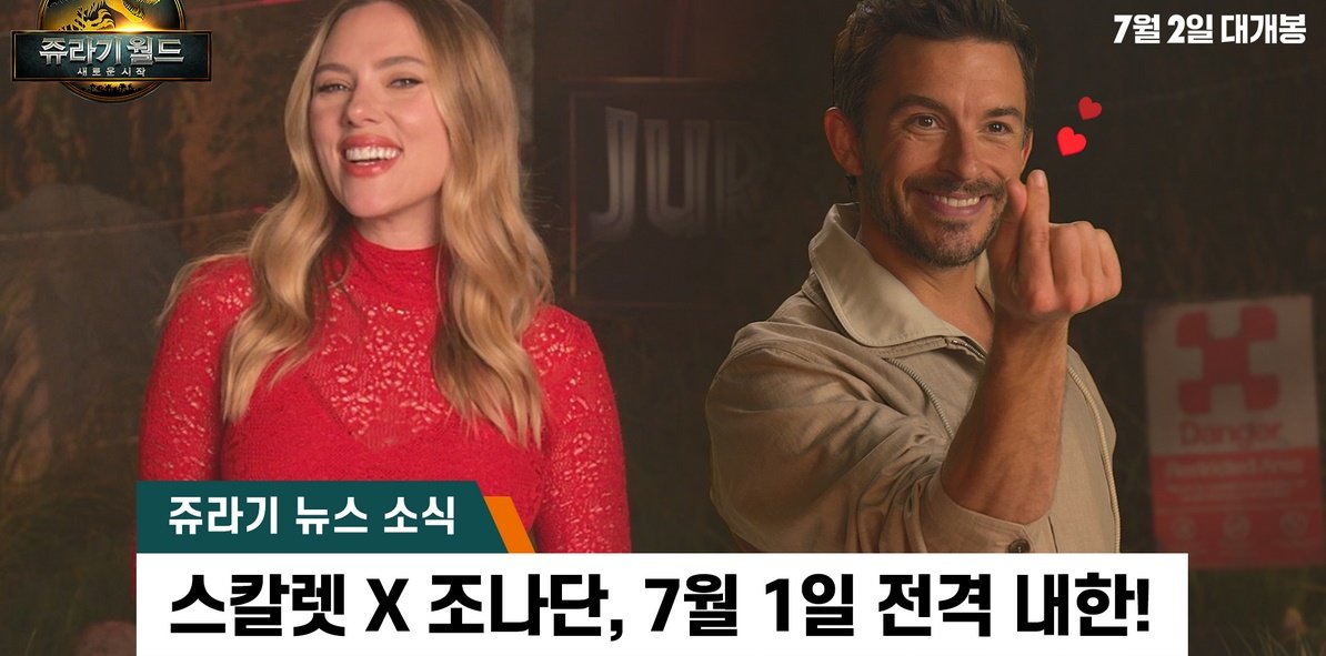 영화 ‘쥬라기 월드: 새로운 시작’의 주역인 배우 스칼렛 요한슨, 조나단 베일리, 루퍼트 프렌드와 연출을 맡은 가렛 에드워즈 감독이 오는 7월 1일(화) 내한을 전격 확정했다.