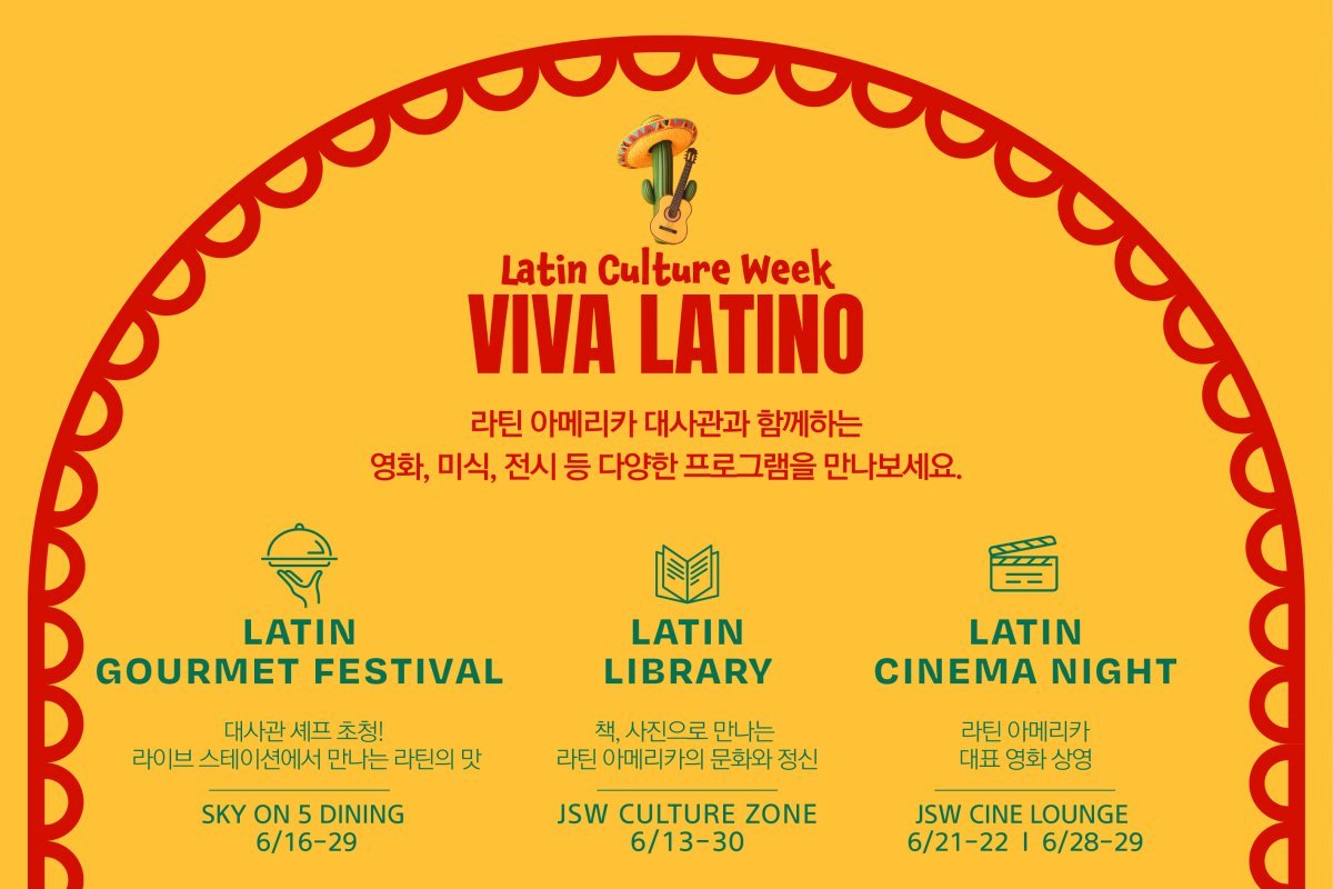 30일까지 컬처 존에서는 ‘라틴 컬처 라이브러리’를 진행한다. 라틴아메리카 각국의 서적과 사진 등을 전시한다. 이와 함께 21~22일, 6월 28~29일 JSW 씨네라운지에서는 각국 대사관이 추천한 대표 영화를 무료로 상영한다.