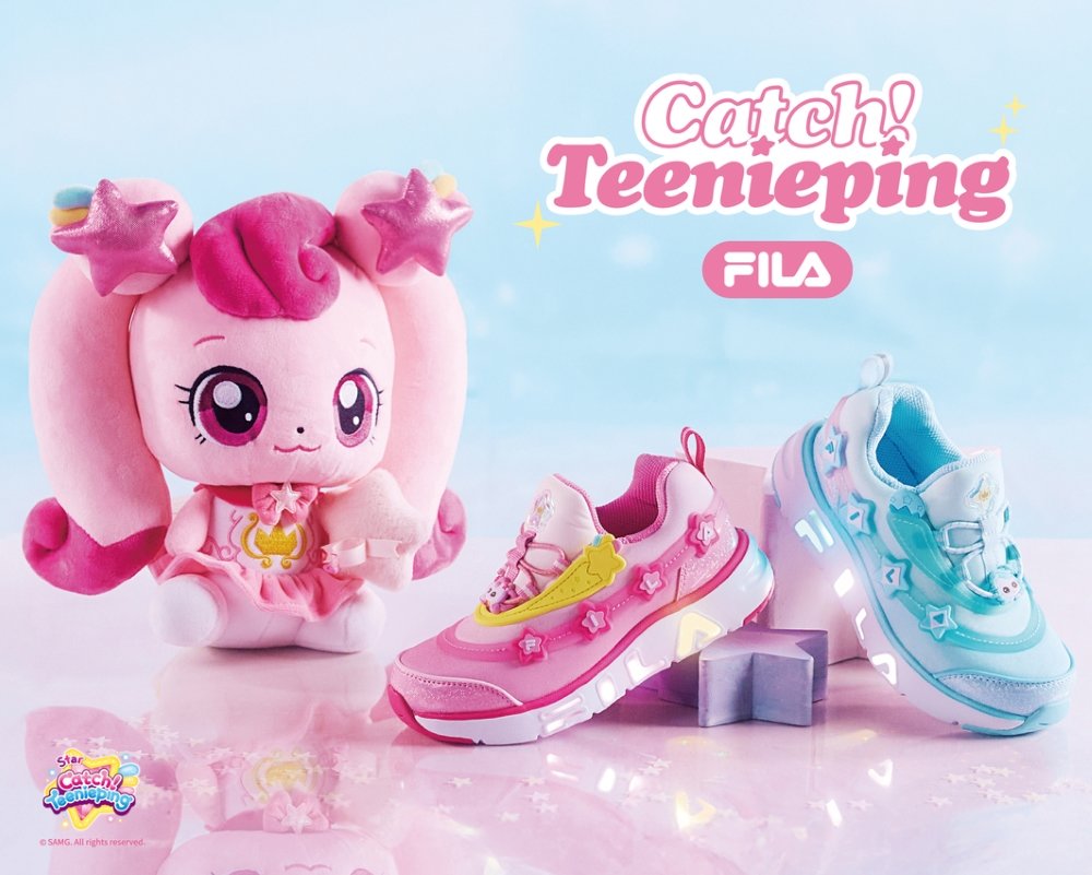 메인 아이템은 운동화 ‘휠라 꾸미’에 하츄핑과 빛나핑 캐릭터를 담은 ‘캐치! 티니핑 휠라 꾸미 라이트’다. 아이들이 신고 벗기 편한 슬립온 디자인으로 제작했으며, 신발 앞쪽에 캐릭터 얼굴을 더해 실용성과 스타일을 갖췄다. 여기에 호기심을 자극하는 라이트 버튼을 추가해 소장 가치를 높였다.