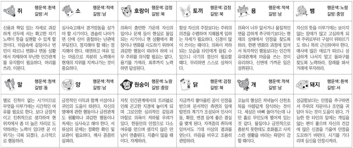 ■ 스포츠동아 오늘의 운세 띠별|운수 좋은 날 (음력: 5월 23일)