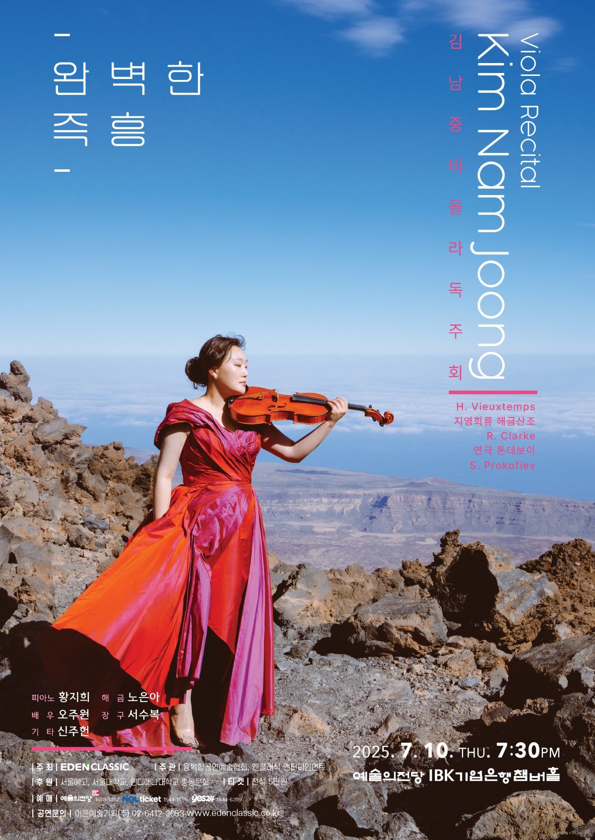 공연은 앙리 비외탕의 ‘파가니니 오마주를 위한 카프리치오’로 시작된다. 비올라 한 대로 펼쳐지는 긴장감 있는 서문이다. 그 다음은 전통 국악기 해금과의 병주가 이어진다. 지영희의 해금 산조를 중심으로 비올라와 해금은 서로의 선율을 받아주고 끌어안는다. 김남중의 시그니처 레퍼토리 중 하나로 해금연주자 노은아 서울대 국악과 교수, 고수 서수복이 함께 한다.클래식 레퍼토리의 중심에는 레베카 클라크의 비올라 소나타가 놓였다. 영국 출신의 비올리스트이자 작곡가인 그는 비올라를 위한 작품들로 특히 잘 알려져 있다. 20세기 초반 여성 작곡가로는 드물게 국제적인 명성을 얻은 인물로도 꼽힌다. 김남중이 연주할 비올라 소나타는 오늘날까지도 비올라 레퍼토리의 걸작으로 평가받고 있다.
